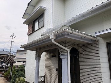 ガルバリウム鋼板の屋根葺きを行い、最後に雨樋の取り付けを行い、工事が完了しました。