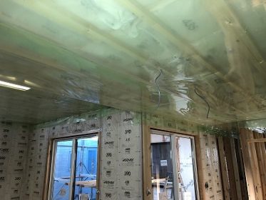 室内では、壁や天井の断熱材もしっかり入り、天井には、その上から気密シートも張り込みました。より断熱効果を高めるメリットがあります。