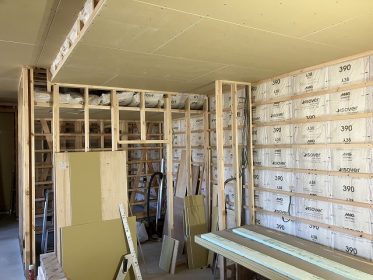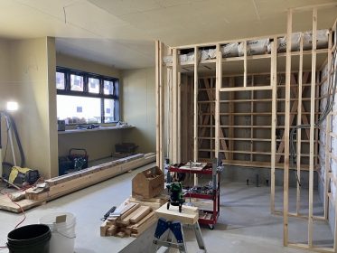 昨年から引き続き、店舗兼住宅の店舗部分の大工さんによる造作工事が始まりました。
