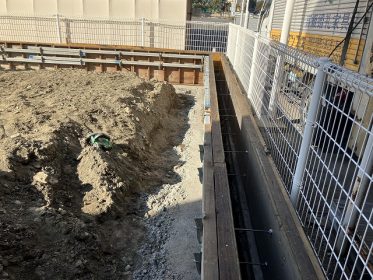 表層部の整地を行い、擁壁の下部に捨てコンの打ち込みが完了しました。
