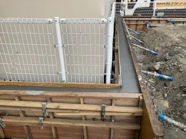 しっかりと型枠を組み、コンクリートの中で流し込み後、天端押さえも完了しました。