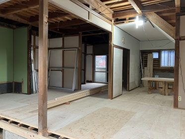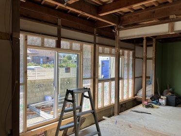 先日から行っている木造住宅の改修工事をご紹介させて頂きますね。室内の間仕切り壁や床、天井などの解体工事が終了し、大工さんの造作工事の真っ只中になってますので、ご紹介させて頂きますね。