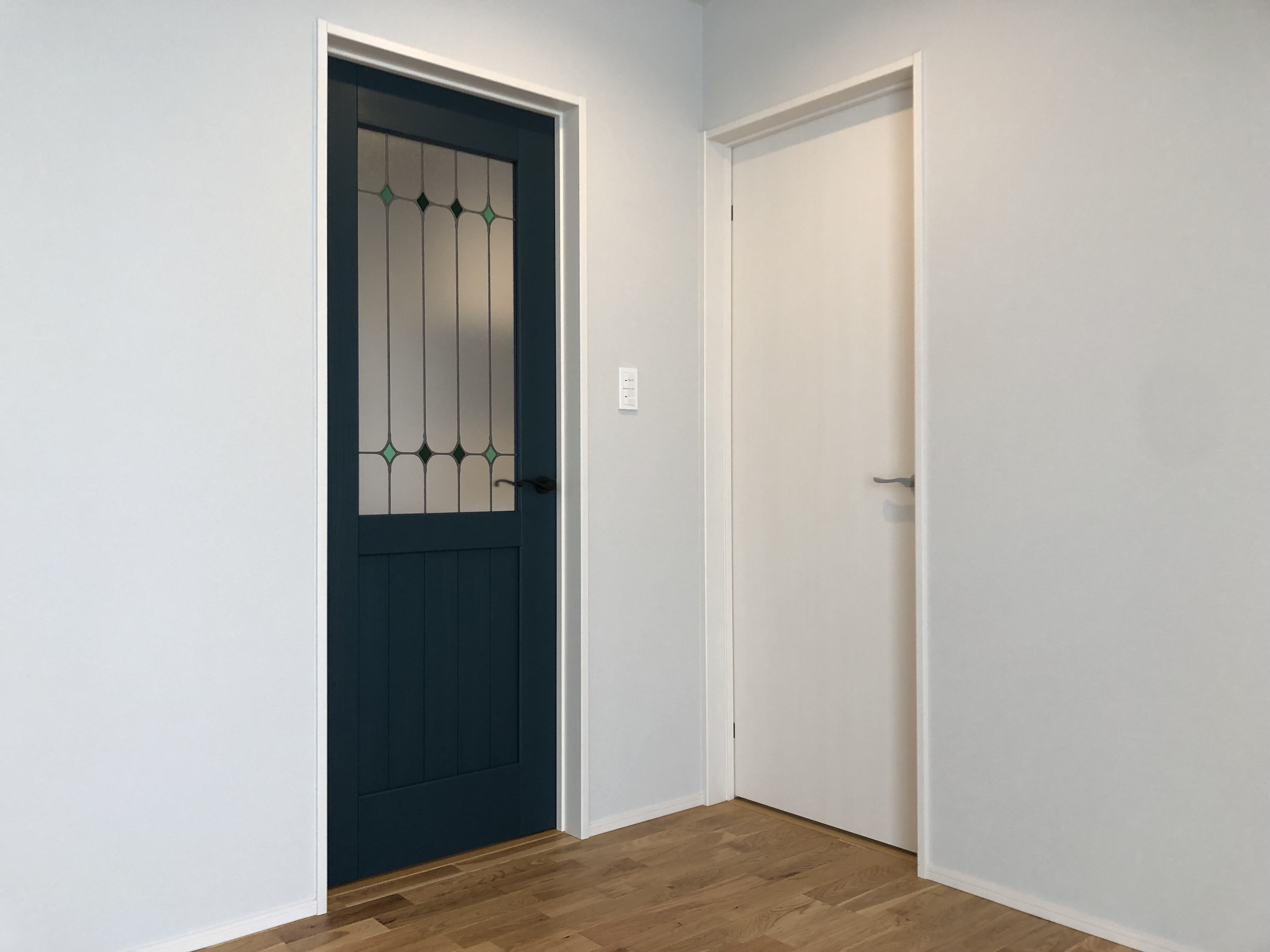 玄関ドアには深いグリーンを採用し、アイアンの装飾が住まい全体の高級感をさらに引き立てています。